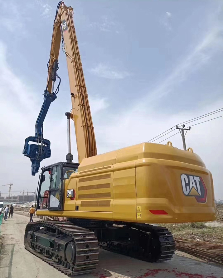 4.挖掘機(jī)打樁臂在打、拔樁時(shí),可調(diào)整速度、振動(dòng)頻率,滿足各種需求。